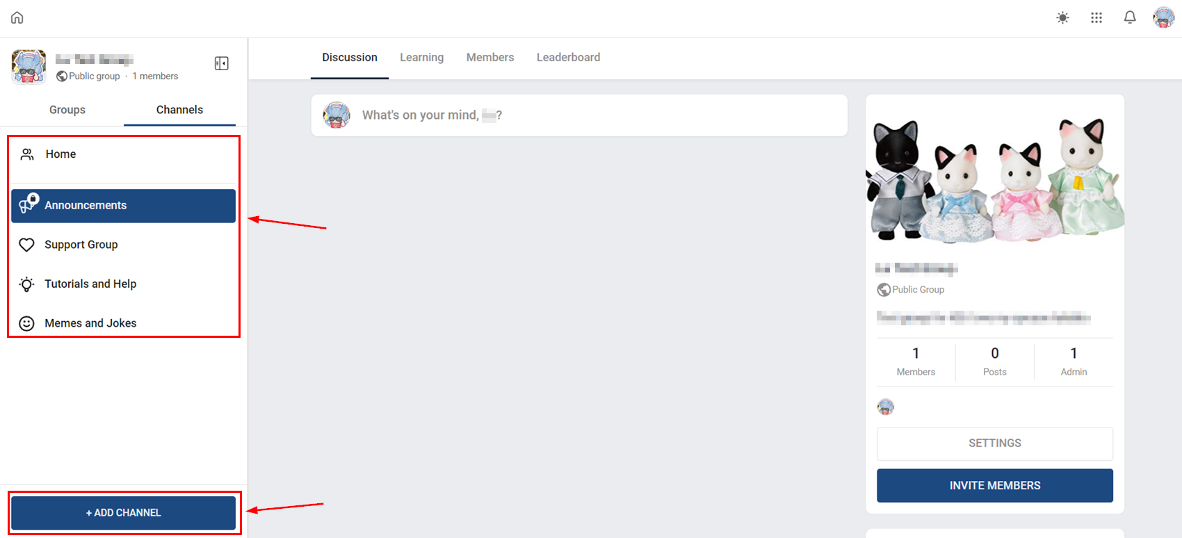 These are subsections inside your Group for specific discussions. You can find them in the left sidebar, to create new channels click the button at the bottom.
