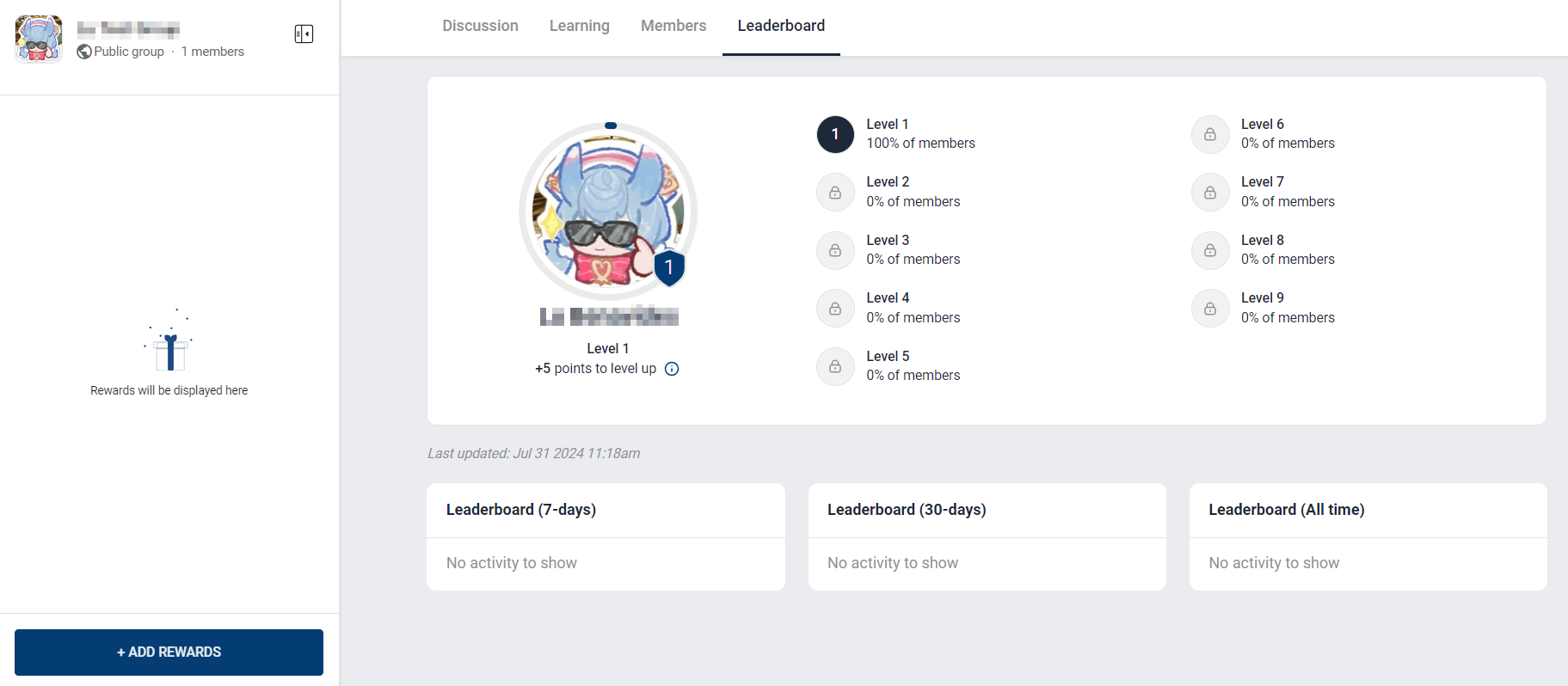 The Leaderboard organizes the Group members depending on their level of interaction and contribution, creating leaderboards for different time frames and highlighting your best members. This allows you to gamify your Communities and offer rewards.
