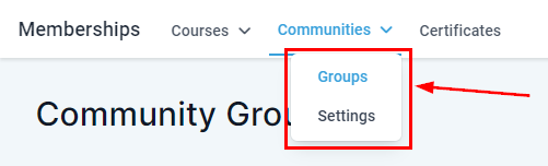 Inside the Memberships section of your system, you can find your Communities, clicking on it will take you to your Groups by default.