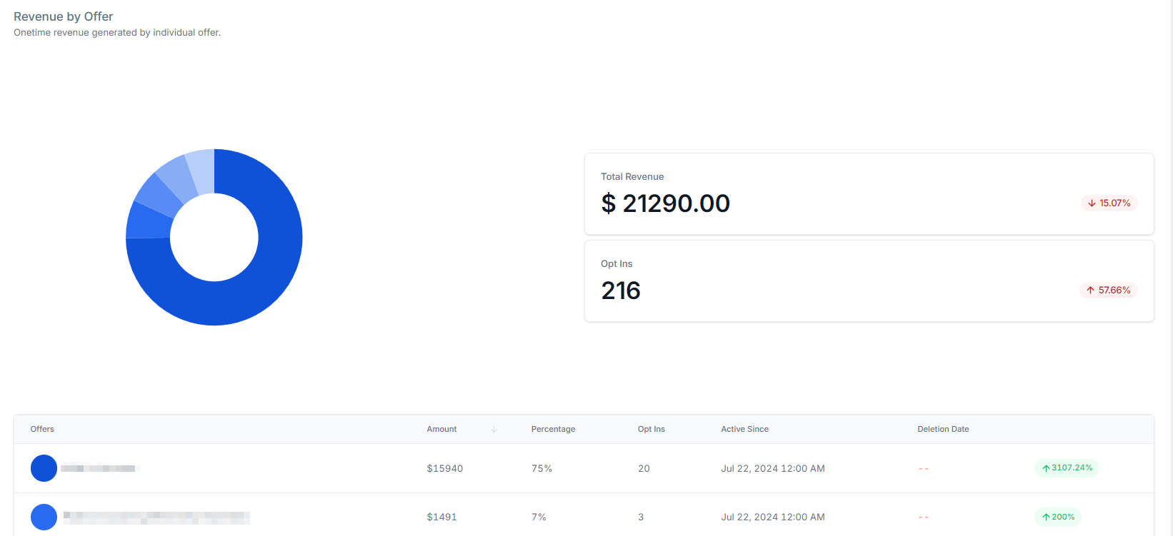 This section gives you graphs and stats for the revenue the one-time purchase of your Membership offers has generated.
