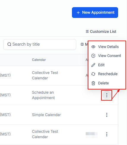 - Status: You can change the status of an appointment by clicking on the drop-down to select "Confirmed, Showed, No-Show, Canceled, or Invalid".