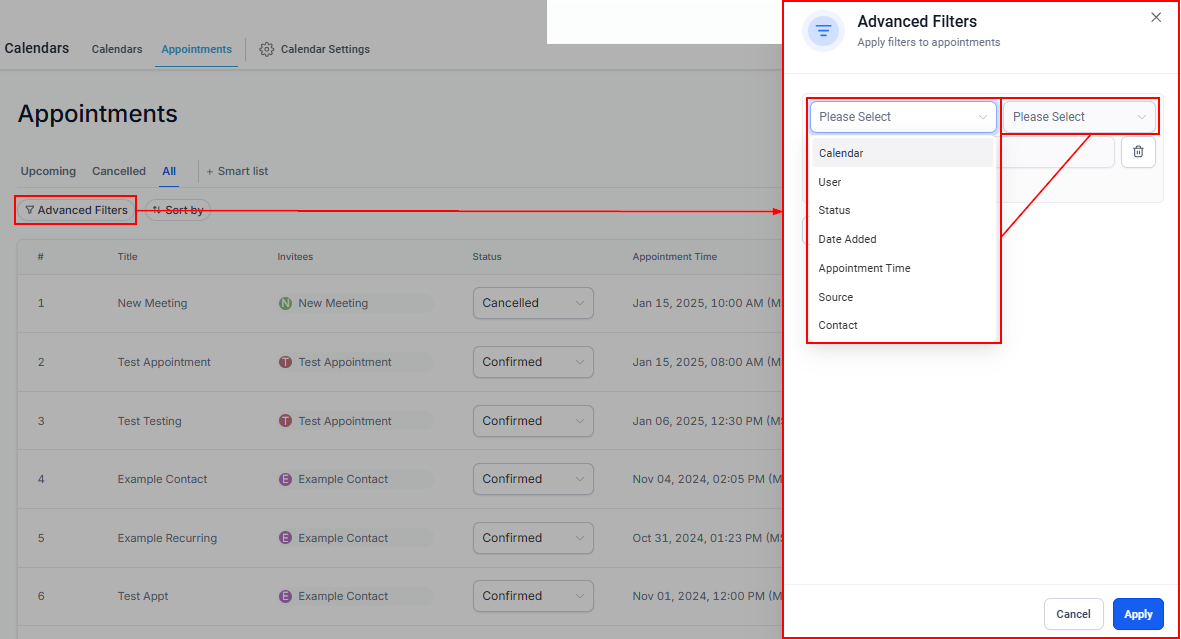 Use advanced filters to refine your appointment view. You can filter appointments by: