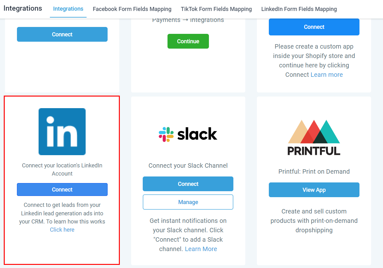 By connecting LinkedIn, you ensure that your networking and marketing activities are efficiently integrated with your overall business strategy, providing comprehensive insights and management within a single platform.