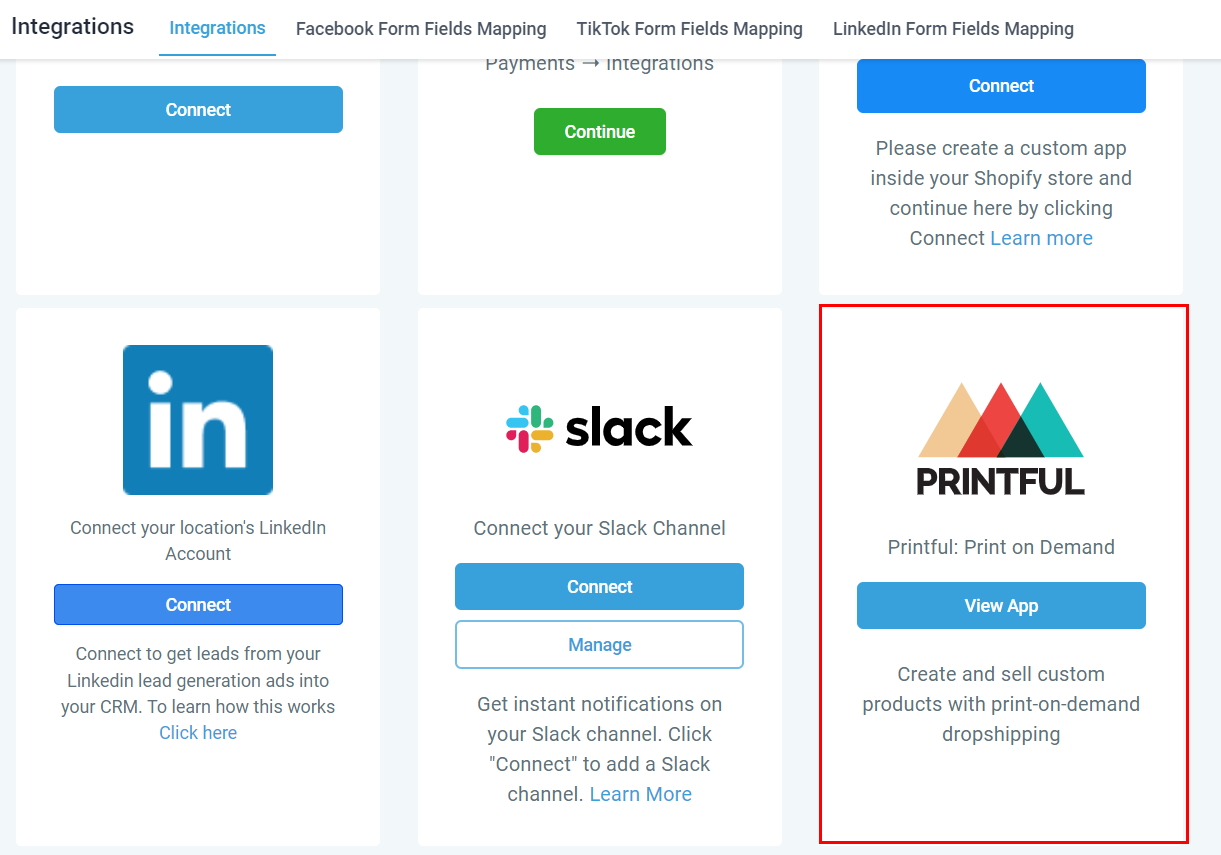 The Printful integration allows you to manage orders, track fulfillment, and synchronize product data directly within the platform, streamlining your e-commerce workflow and providing a unified experience for managing your business activities.