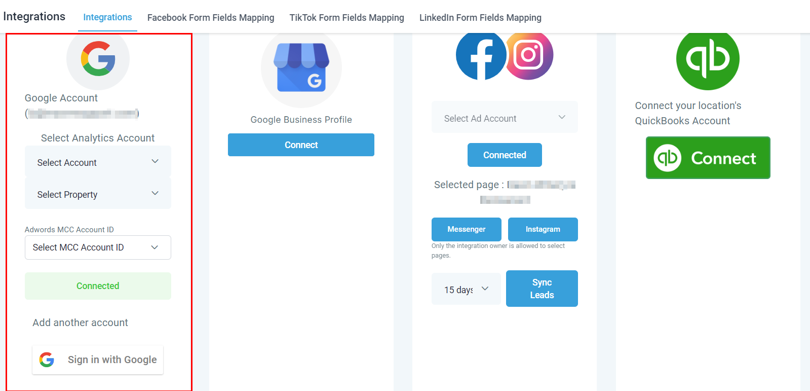 Integrating various platforms and tools with your account enhances its functionality and streamlines your workflow. By connecting accounts like Google, Facebook, and QuickBooks, you can efficiently manage and track your business activities directly from your CRM. Whether it's responding to customer messages, tracking ad performance, managing your calendar, or organizing virtual meetings, these integrations empower you to maintain a cohesive and productive business environment.