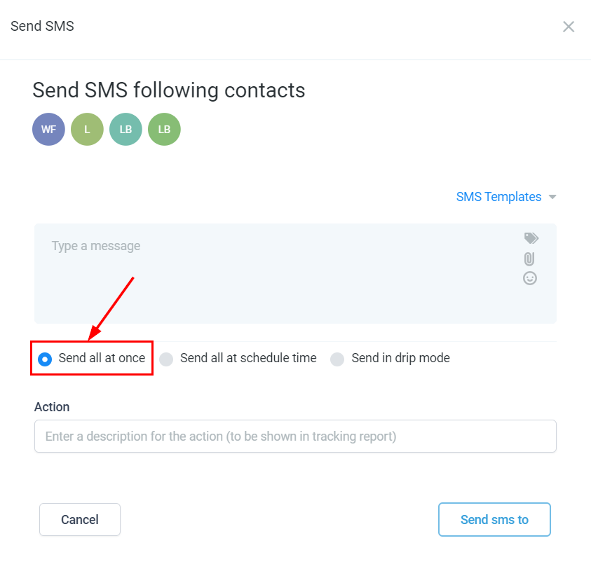 Select the "Send All at Once" feature to instantly send your message to all selected contacts. This option allows for rapid execution, ensuring timely communication with your audience.