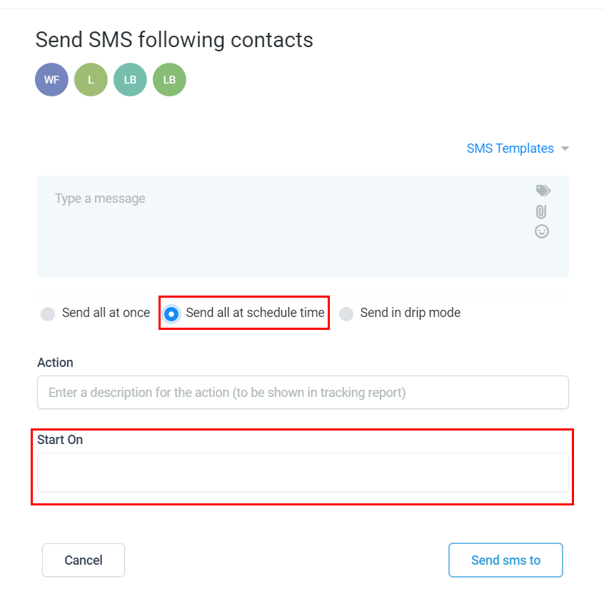 - Start On: Select the exact date and time for message delivery to your contacts to begin.