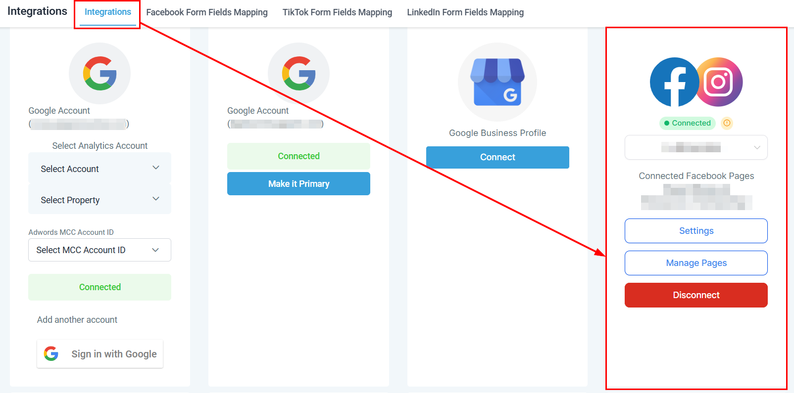 Within the platform, you can resolve issues related to missing Facebook permissions with the Connect Multiple Facebook and Instagram Pages feature. This capability, already available for sub-accounts using the Single Facebook Page version, streamlines troubleshooting by enabling users to quickly identify and address permission-related issues directly from the platform.