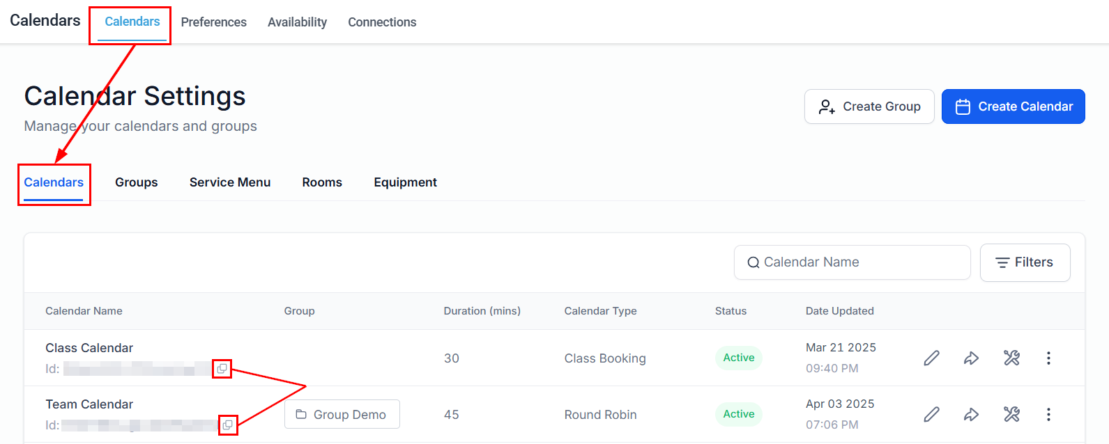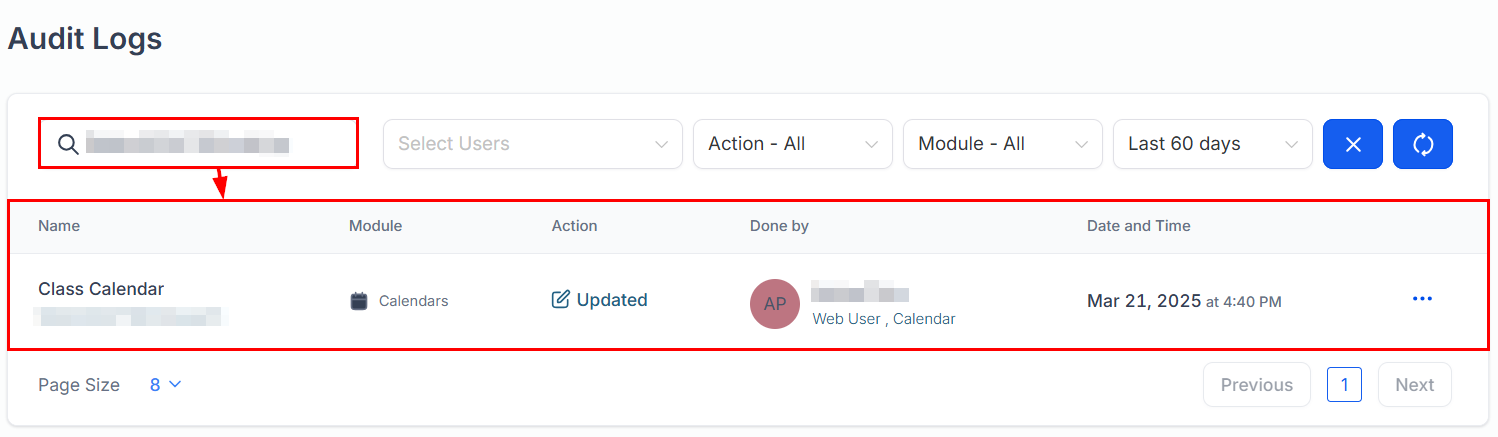 Once you have the Calendar ID, you can enter it in the search bar. Now, the Audit Logs will only display records for that calendar.
