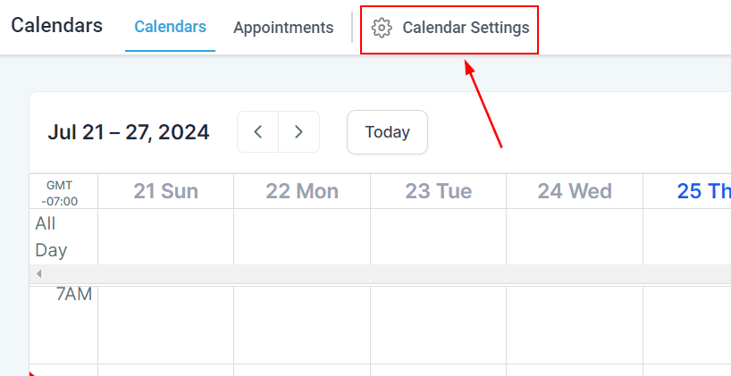 Access your Calendar Settings by going to the Calendars section and clicking the gear icon.