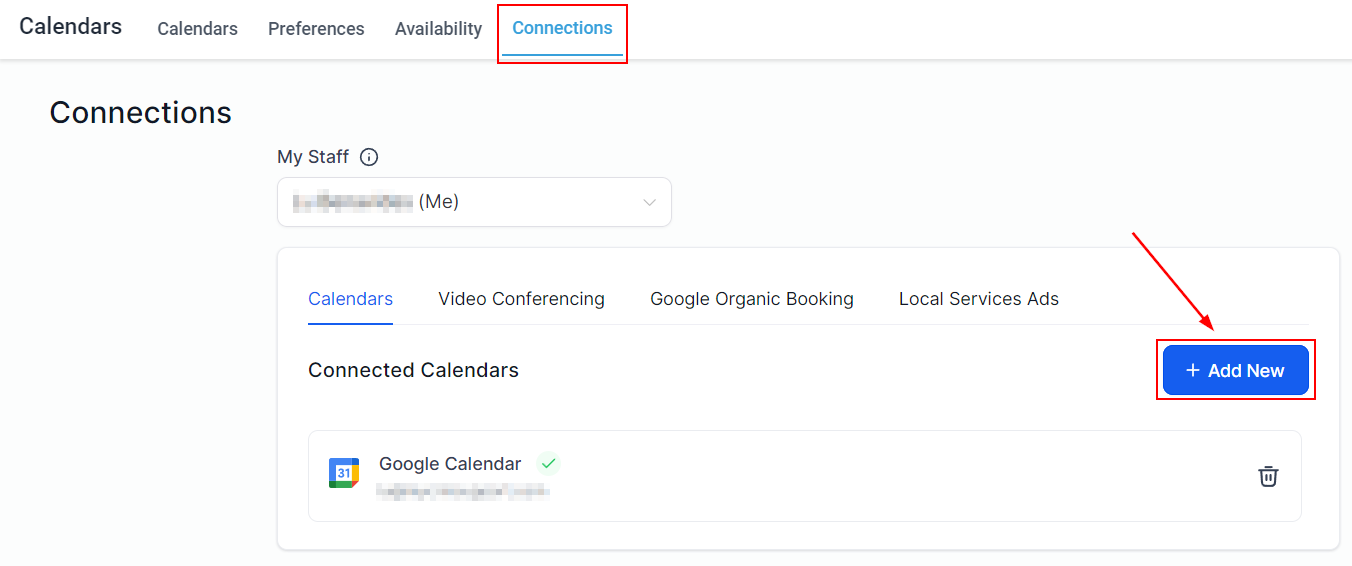 Inside the Settings go to the Connections Tab, and click on Add New.