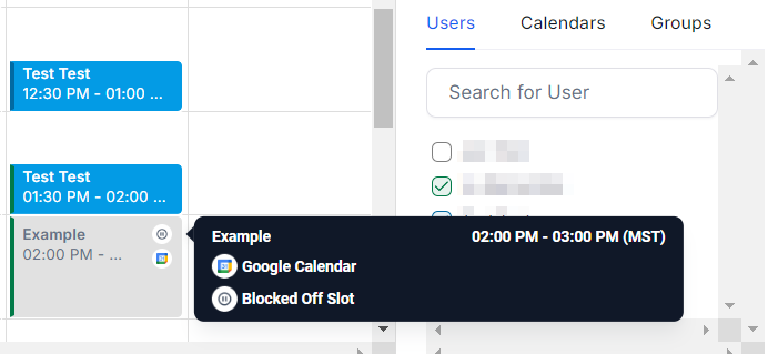Hover over any appointment for a detailed snapshot, including event type, title, start, and end times. Stay informed with a simple hover—no need to click.
