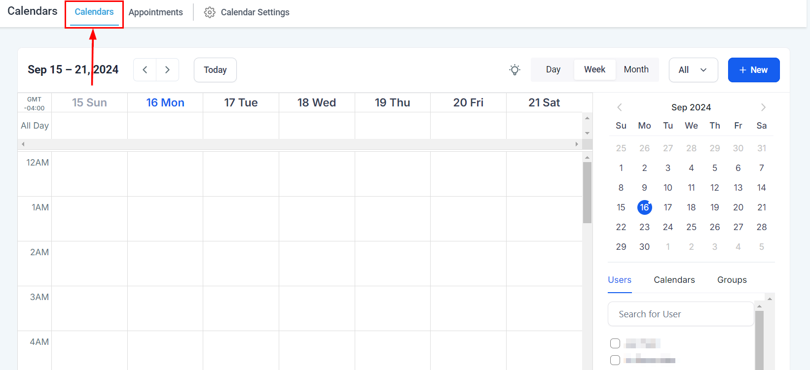 Navigate to the left sidebar menu and select the "Calendars" tab to access the calendar view.