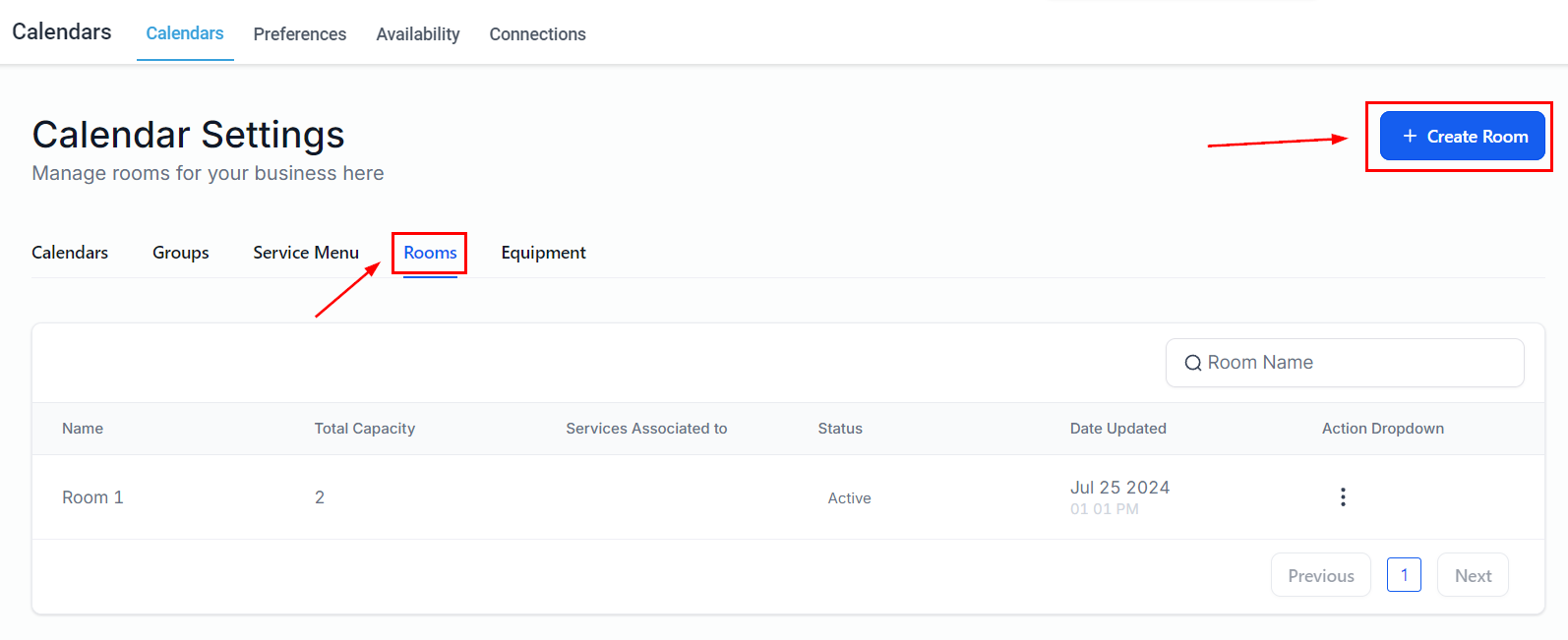 - Select Calendar: Use this drop-down menu to link your rooms to their service calendar.