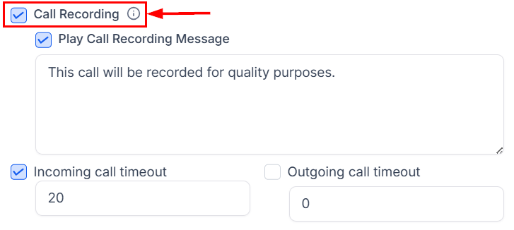 Within this dialogue, you can modify your phone number settings. Check the “Call Recording” box to turn on call recordings.