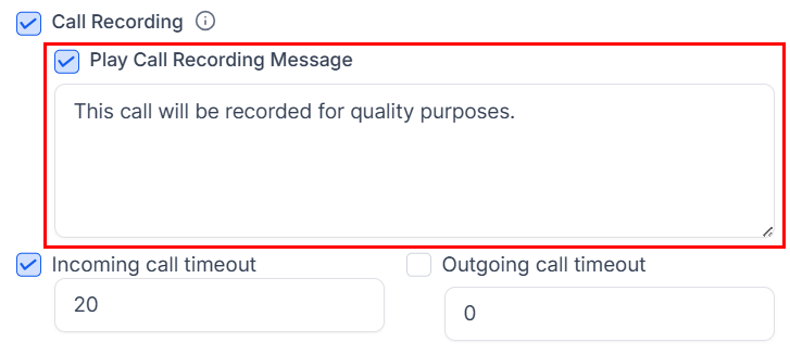 Choose whether to notify your contacts that the call is being recorded by enabling the "Play Call Recording Message" option.