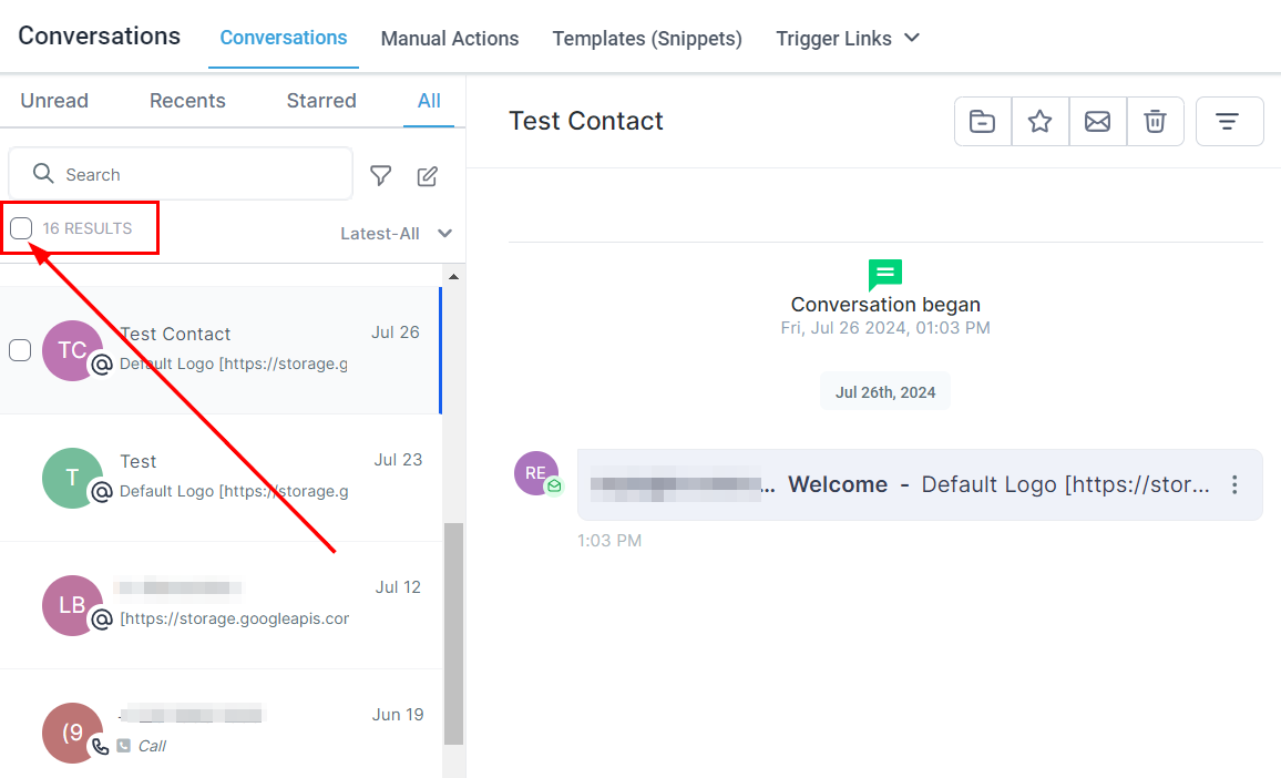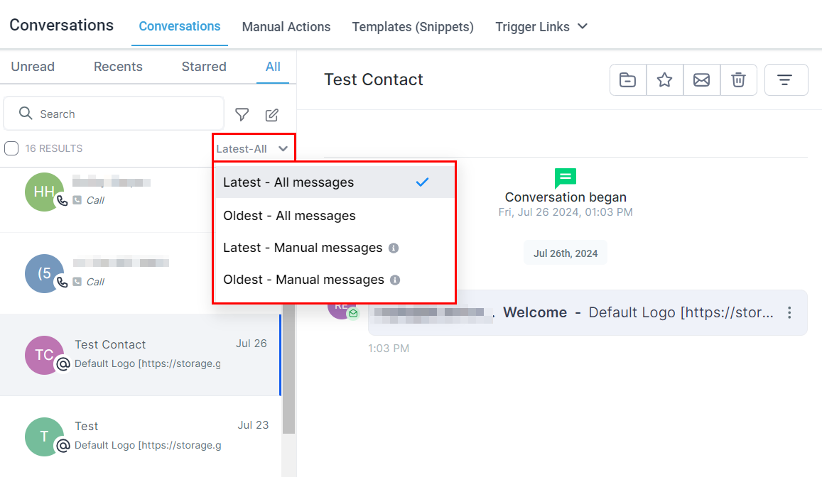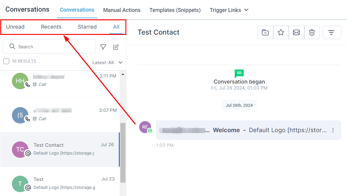 - All Tab: Provides a comprehensive list of all conversations. Scroll through or use the search bar to find specific interactions.