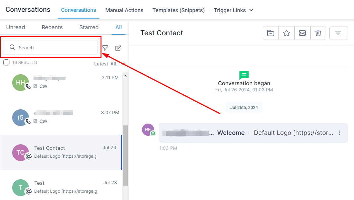 Utilize the Search Bar to quickly locate conversations by entering their name or an identifier such as their email address or phone number