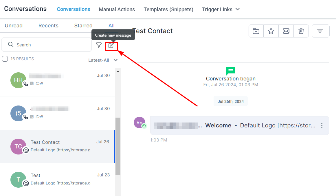 Reach out to existing contacts or leads by sending a new message, whether it be through SMS, email, or other integrated messaging channels. This is useful for following up, sending reminders, or initiating new discussions.