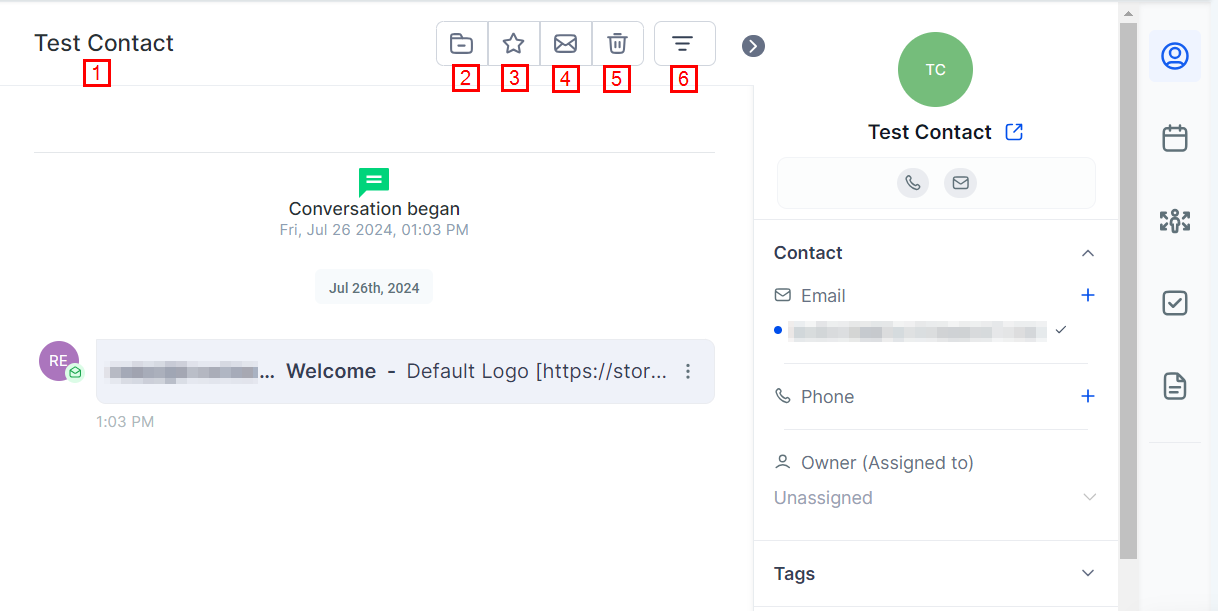 - Mark as Read/Unread: Use the Mark as Read button to indicate that a conversation has been reviewed. Click again to mark it as unread, allowing you to track conversations for follow-up.