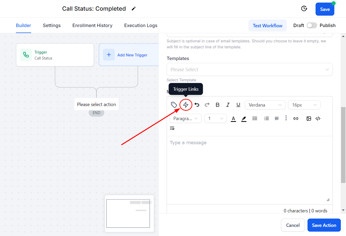 Be sure to publish and save the workflow after adding your desired steps to ensure it is properly activated and ready to execute.