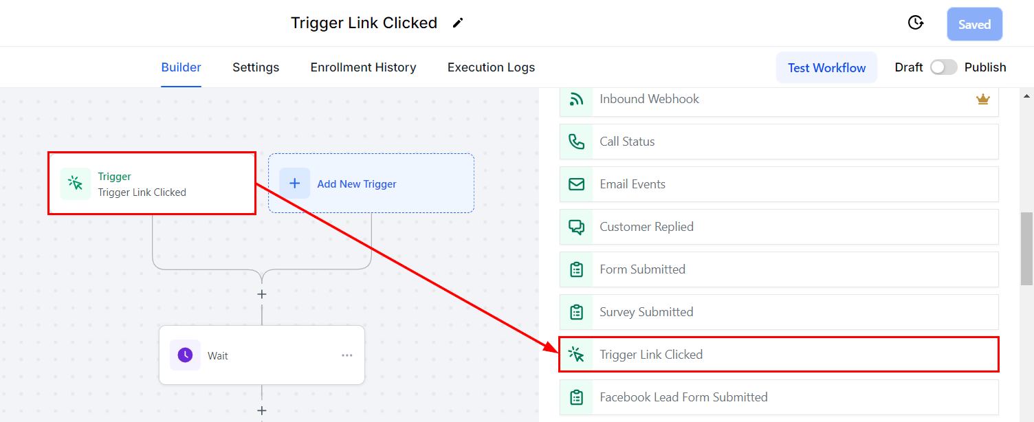 Set up an additional workflow to initiate when the lead clicks the confirmation trigger link. This action can trigger the next steps in your marketing or engagement strategy, such as enrolling the lead in nurture campaigns, applying tags for segmentation, advancing them through the sales pipeline, or activating other workflows.