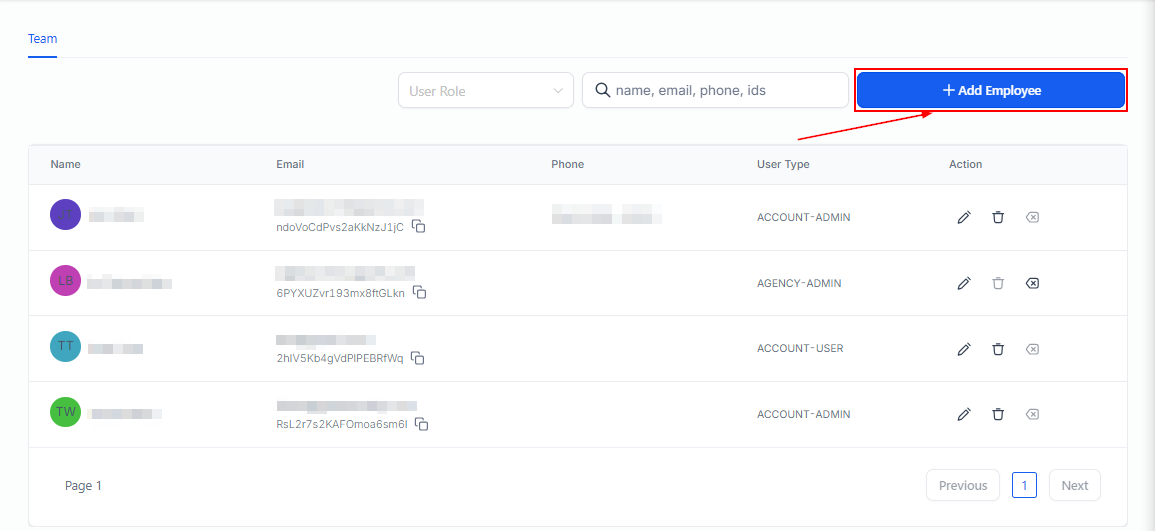 Upon navigating to the page, you'll be presented with a comprehensive list of team members who possess access to the account. This includes essential information such as their name, email address, and contact number, providing an easy-to-view overview of your colleagues and their associated details.