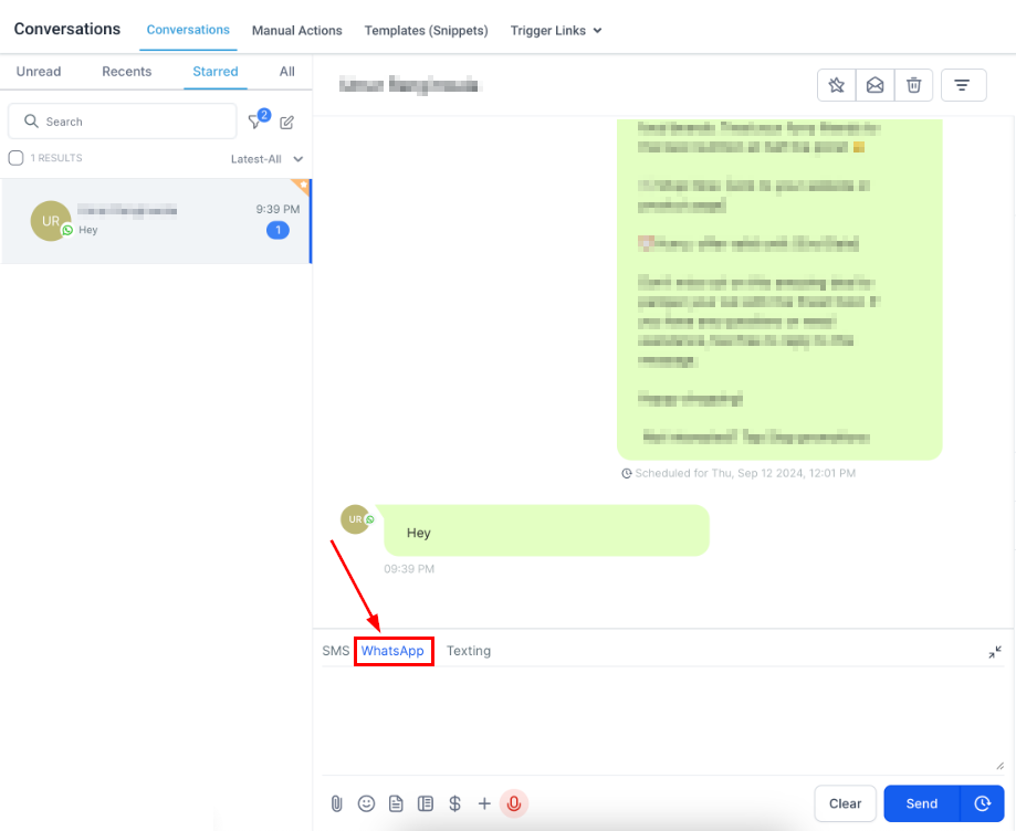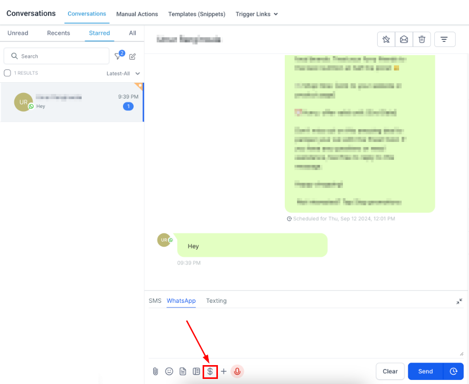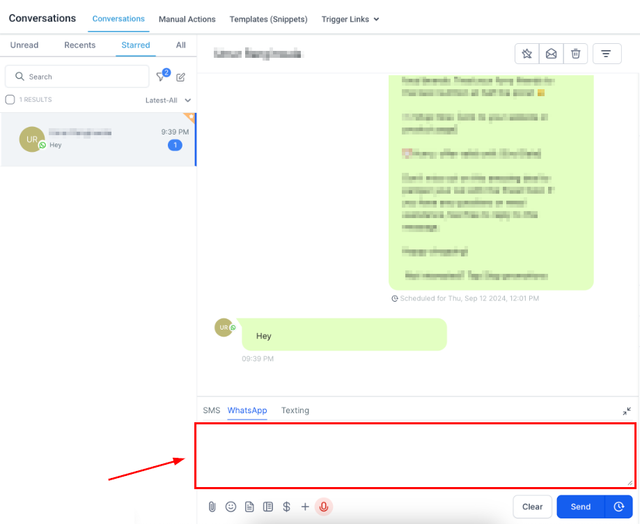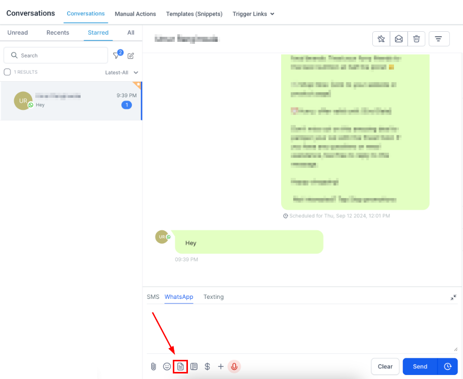 Additionally, you can use one of the WhatsApp templates to write them by clicking the dog-eared paper icon.