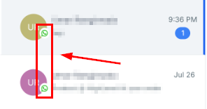 You can identify Whatsapp messages in the conversation log by the green icon that represents it.