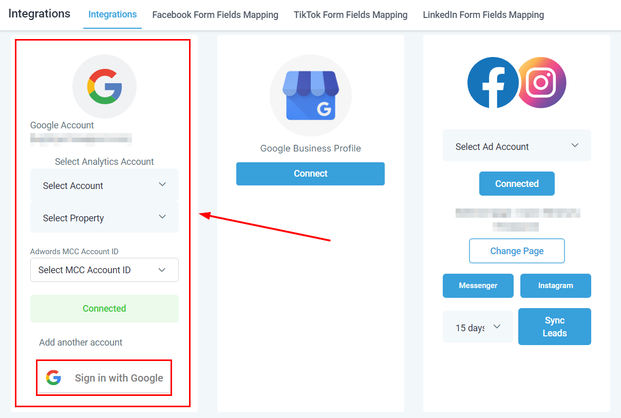 If you haven't connected it click Sign in with Google to do so. For additional help, refer to the CRM's integration tutorials. These tutorials provide a step-by-step guide on how to connect your Google account to the CRM.