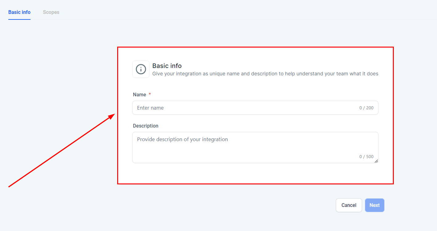 - Integration Name: Give your integration a meaningful name to identify it easily.