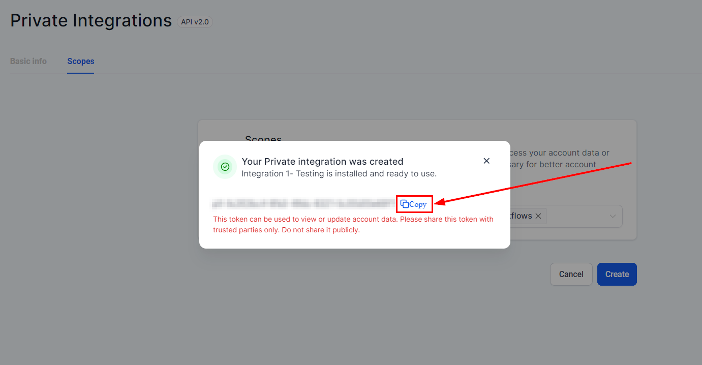 - Ensure that you copy and store the access token securely as it will not be displayed again.