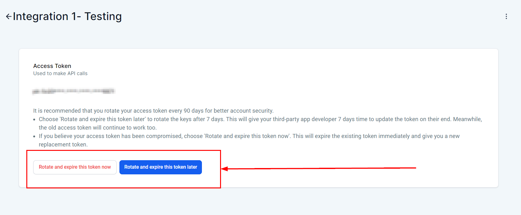 - Regular Token Rotation: Regularly rotate your integration tokens using the 'Rotate Now' feature to enhance security.