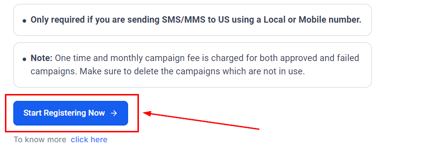 Scroll down under the A2P Wizard and click Start Registering Now.
