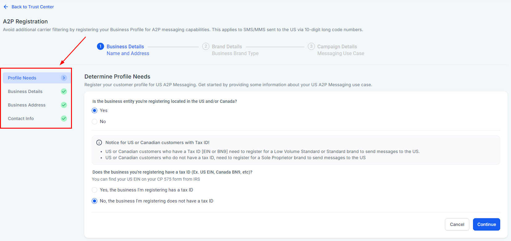 Before submitting your A2P application, verify that you've completed the Business Profile with the correct information. If you haven't, please check the article “A2P - Completing the Business Profile” before proceeding.