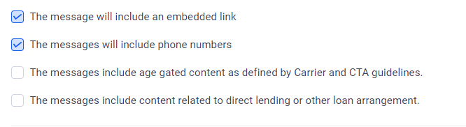 Check the appropriate boxes for your messages, such as age-gated content for messages including information about gambling or lotteries.