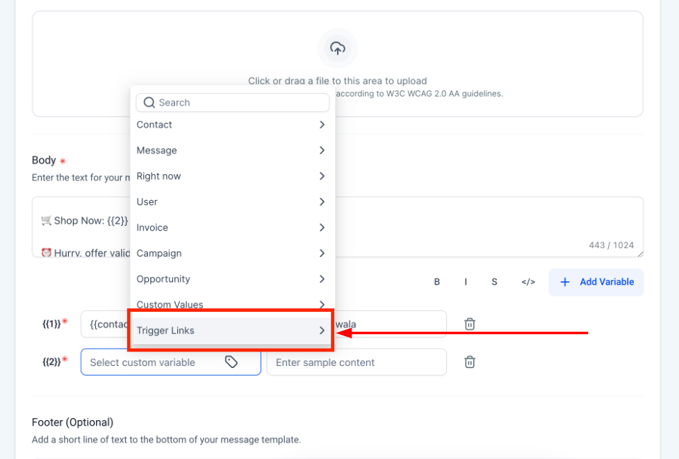 Setting Up Trigger Links in WhatsApp Templates