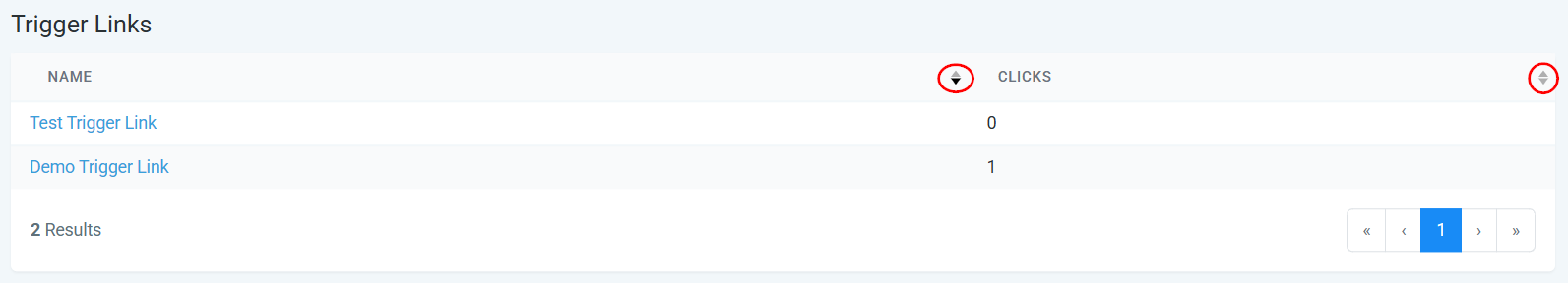 Sort either column in ascending or descending order by clicking the arrow icons next to the header, making it simple to organize your links.