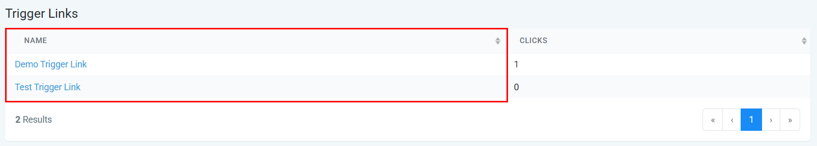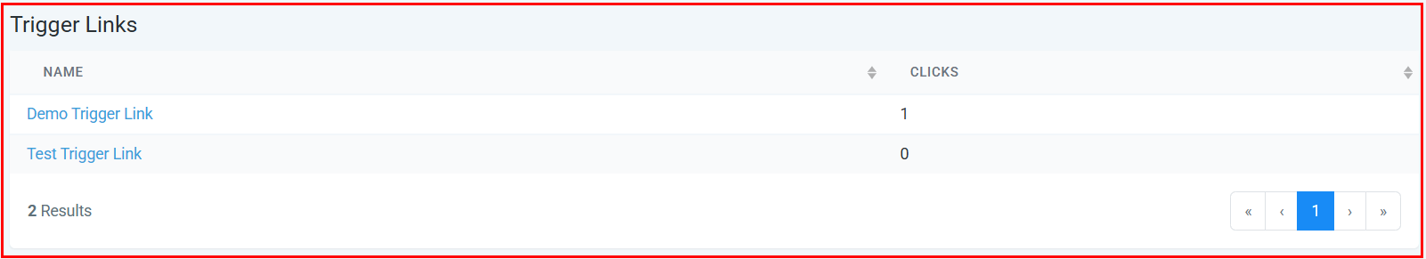 The data table presents a detailed overview of your trigger links, organized for easy navigation.