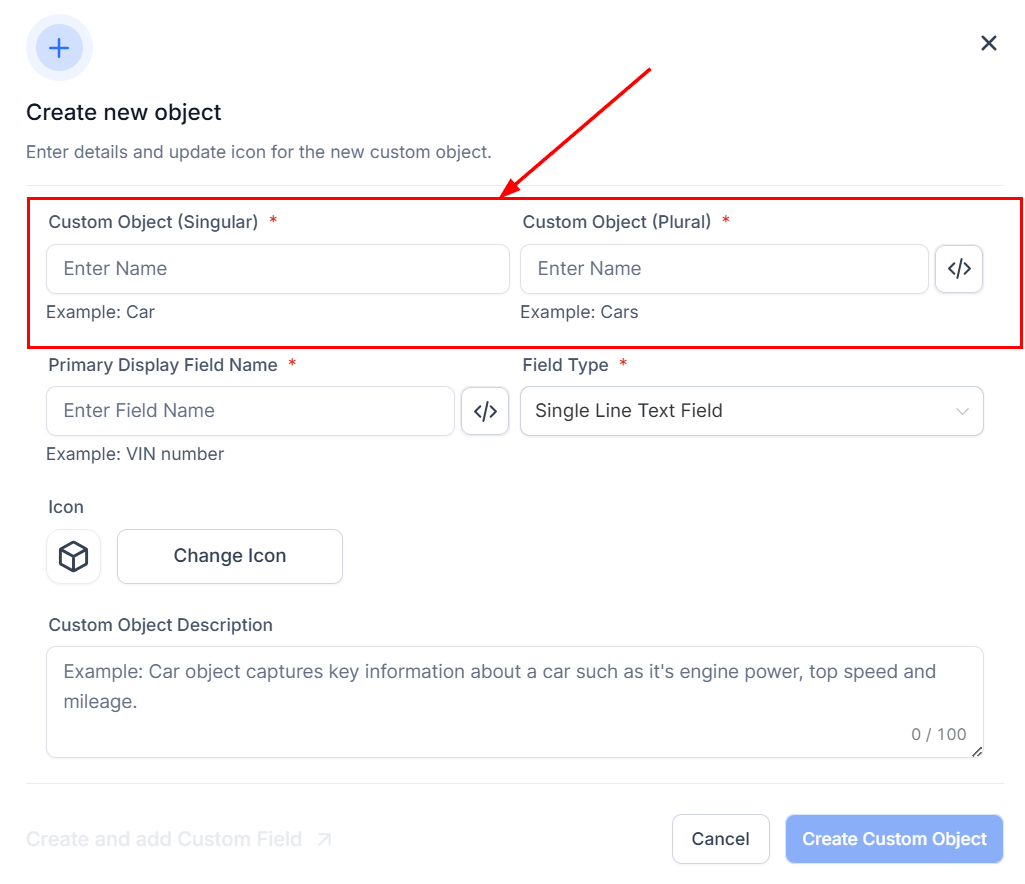 Head to the Objects tab in your account settings, then click the Add Custom Object button to begin.