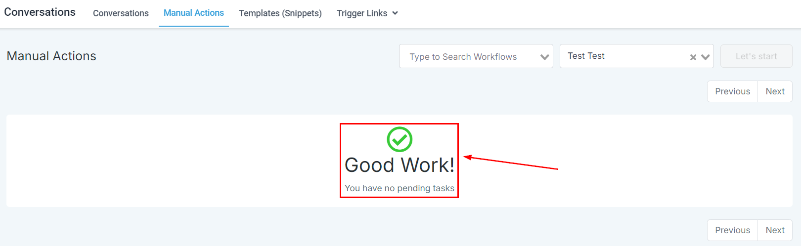 Even though workflows may require different actions to complete, there's no need for concern when you see the No Manual Action message! That means your selected user has already completed all required tasks. As workflows and users change, so will any necessary manual action - ensuring you stay up-to-date with every task.