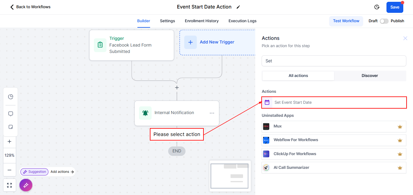 The Set Event Start Date workflow action is an essential tool for organizing time-sensitive tasks and ensuring your workflows run efficiently. Whether you're using custom fields for dynamic scheduling, fixed dates for specific events, or recurring days for ongoing tasks, this feature allows you to tailor your workflows to meet your business goals. With the right setup, your workflows will keep you ahead of schedule and your contacts engaged at every step.