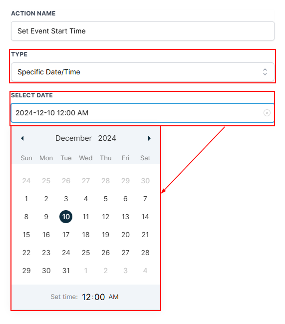 The Set Event Start Date action allows you to define a specific day, date, and time for an event to commence. This guide will walk you through the Set Event Start Date action, explaining its purpose and how to configure it effectively for your needs.