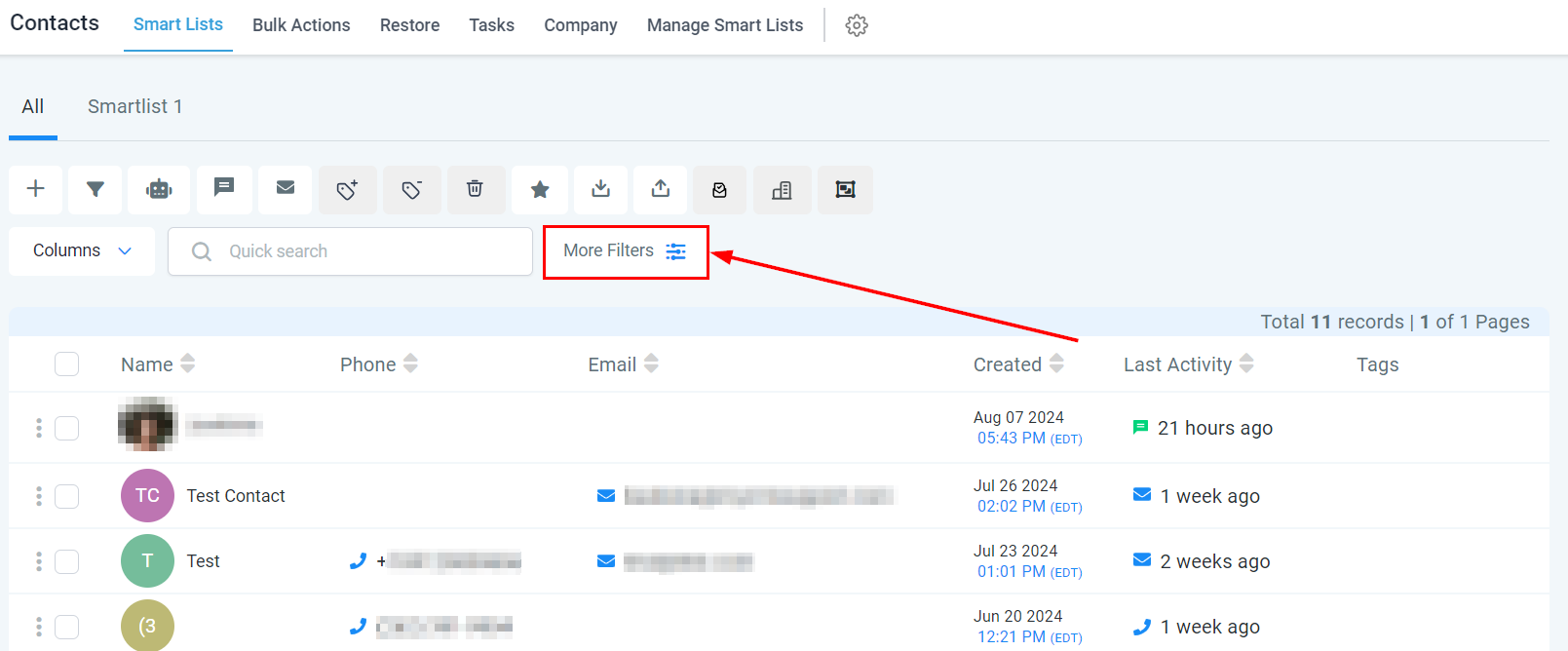 To do this, you will need to add filters which can be found by clicking on the More Filters button on the top of your contacts list.