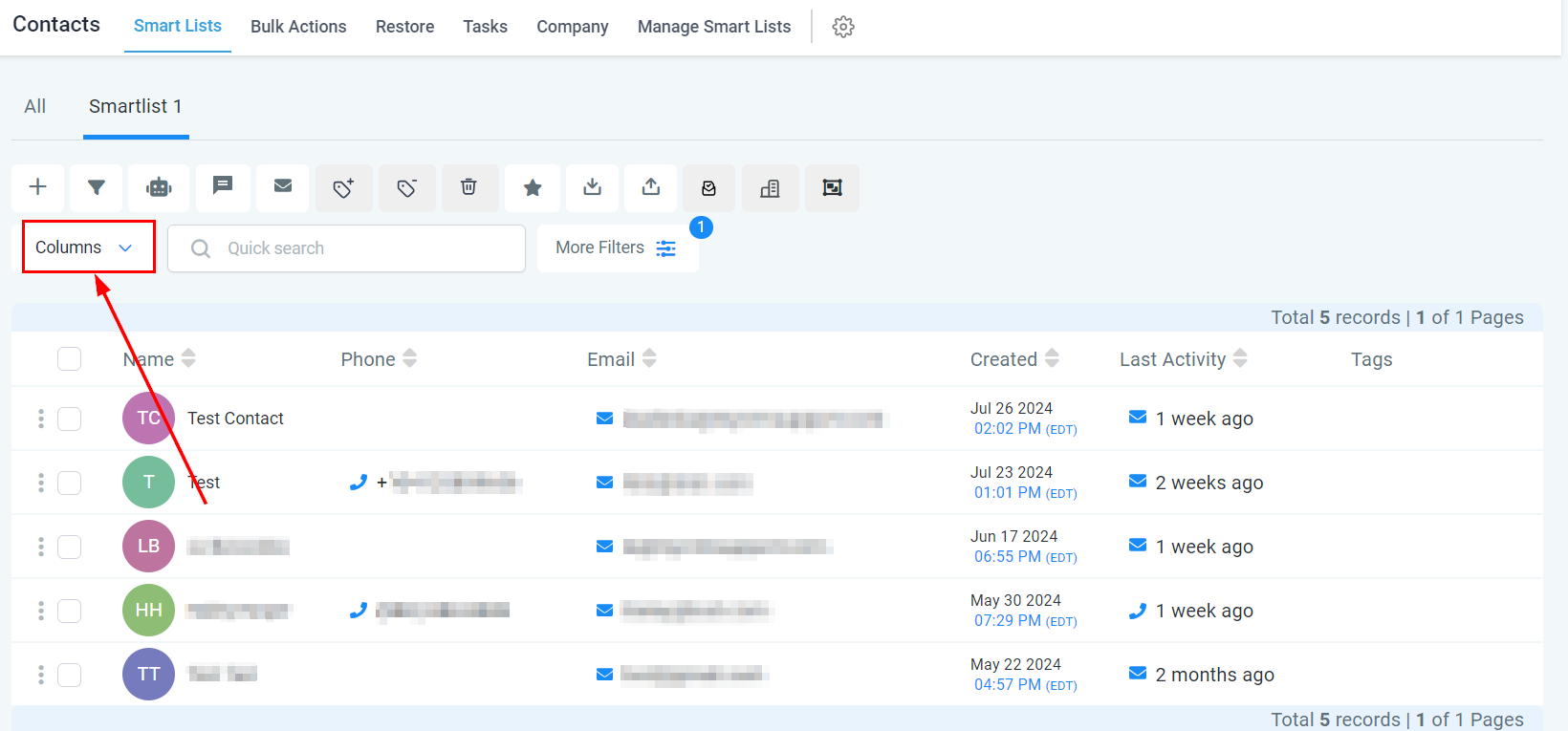 To take control of the information you see in your smart lists, the Column drop-down option lets you customize and manage the data columns available to view. Located just to the top right of any contact list, simply select this drop-down icon to turn on and off functional columns custom-tailored to suit your viewing needs.