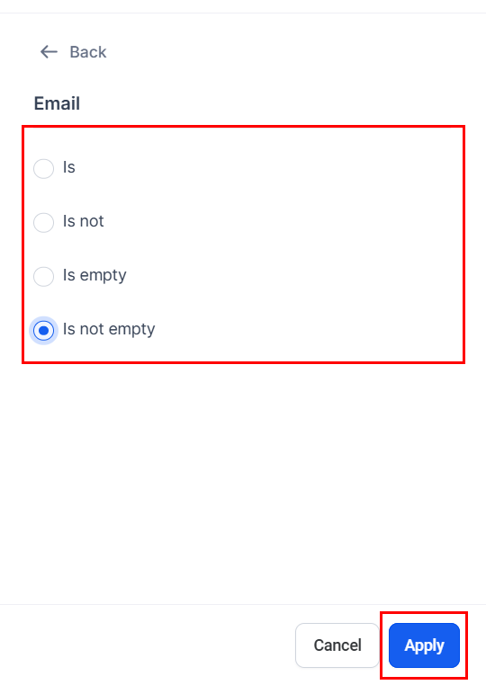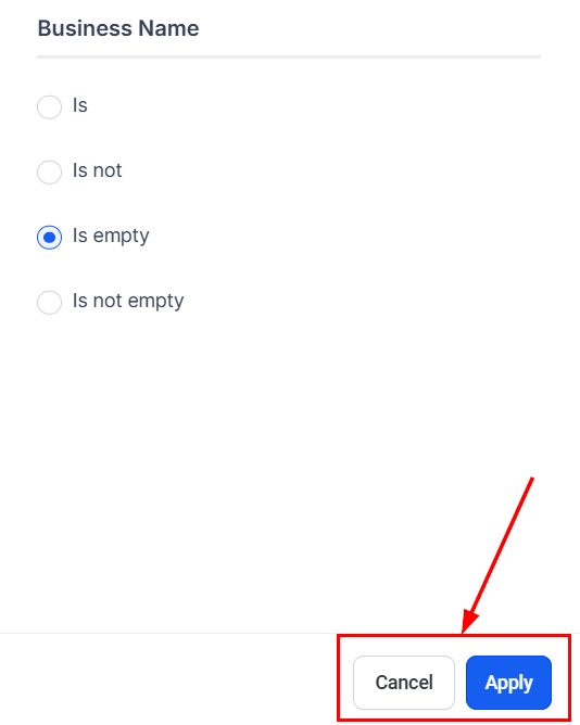 Once you have chosen your preferred option, click “Apply” to maintain your filter. Otherwise, click Cancel.