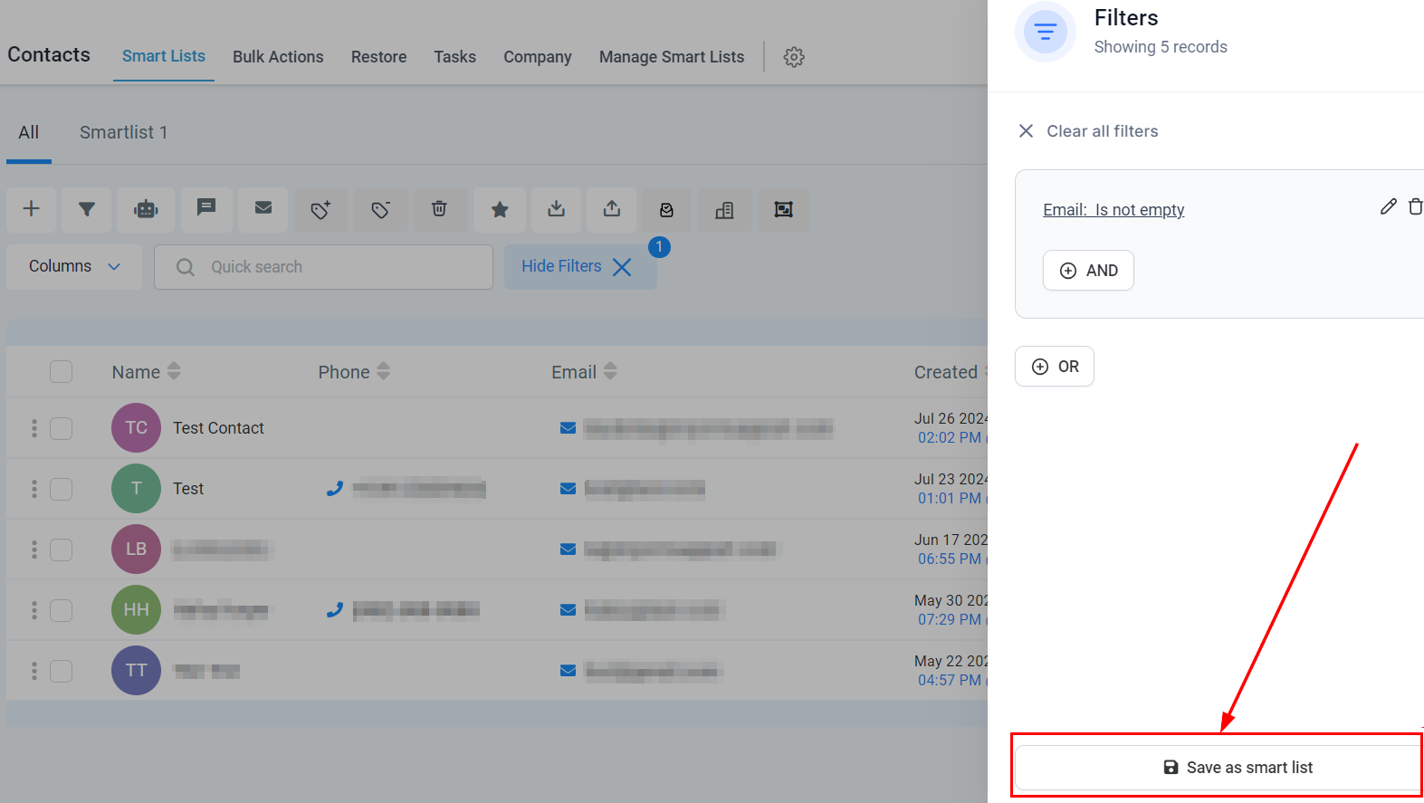 Now it is time to finish setting up your smart list. To do this, simply click the ‘Save as Smart List’ button located on the bottom right of the page. This button is important as it will officially save your smart list and prepare it for use.