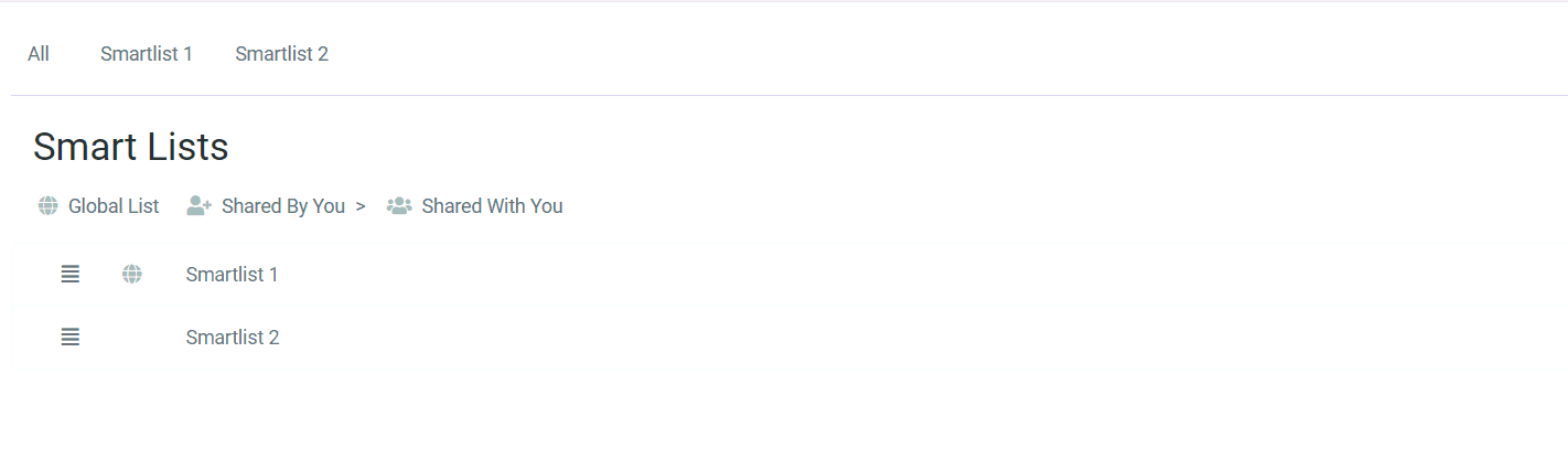 Efficient smart list management is key to optimizing your CRM. Use the Manage Smart Lists section for quick access, customization, and control over all your lists.