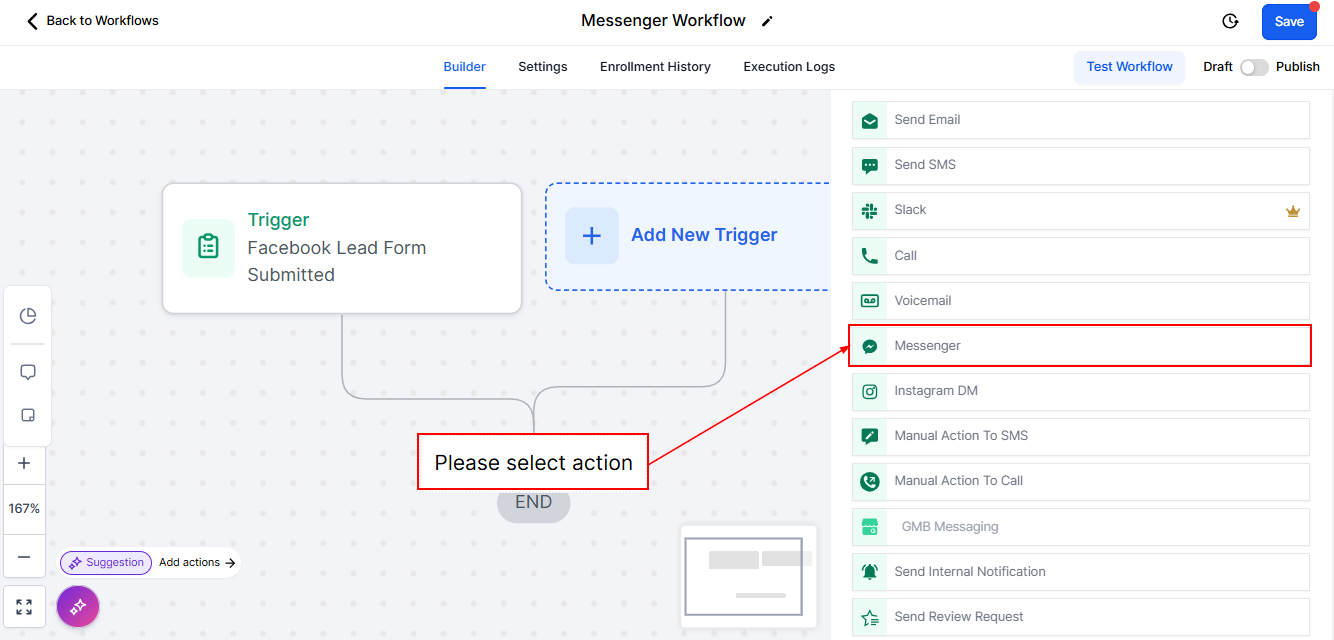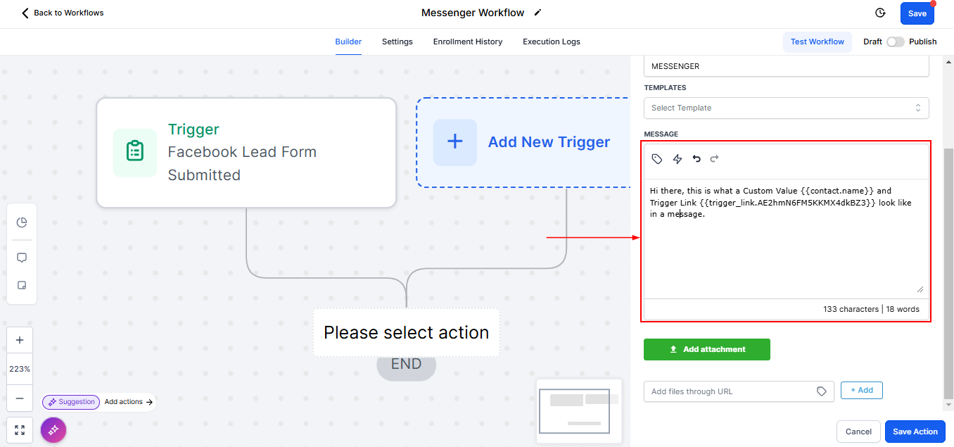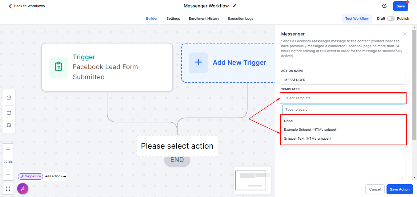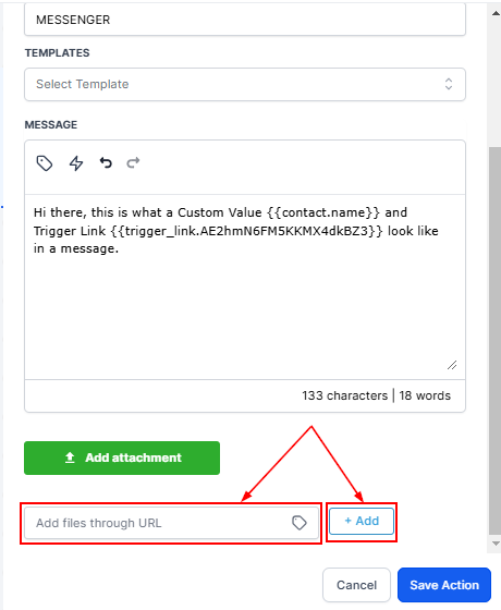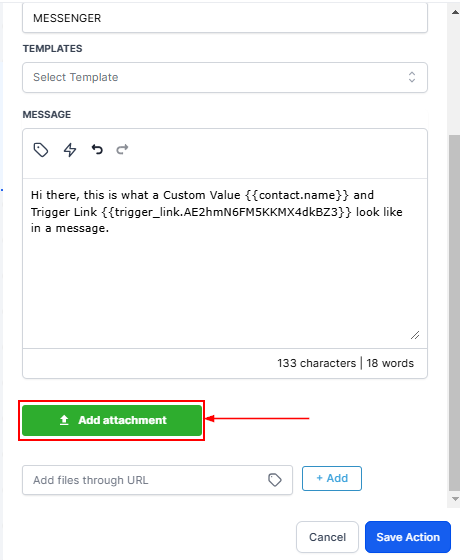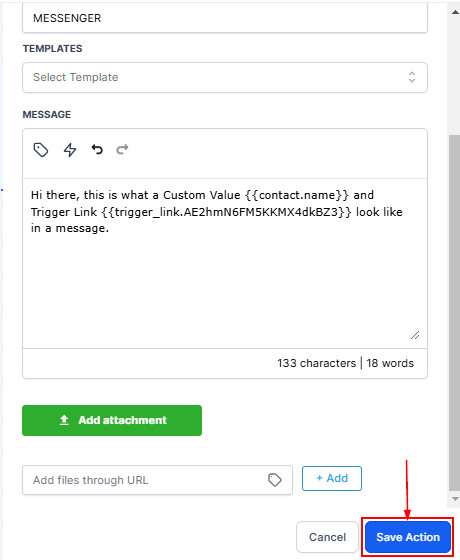 After configuring your message, templates, and attachments click Save Action to complete the setup. Your Messenger action is ready to deliver a good and engaging customer experience.