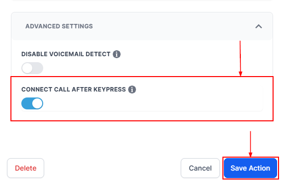 The ”Connect Call” option bridges the user to the lead once the user presses any number key. This ensures seamless communication and a quick connection between both parties.